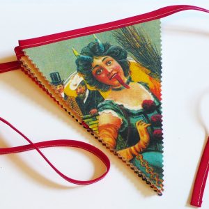 Material: fieltro de lana natural, cosida y serigrafiada manualmente.