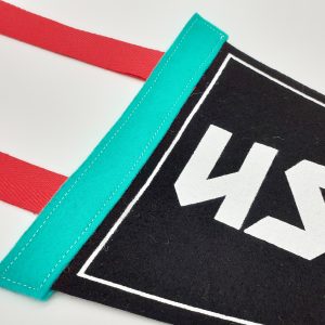 Material: fieltro de lana natural, cosida y serigrafiada manualmente.