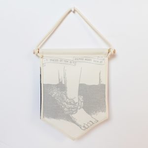 Material: fieltro de lana natural, cosida y serigrafiada manualmente.