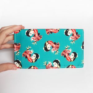 Tanto las telas, como el estampado, como la confección de la cartera se ha hecho en España.